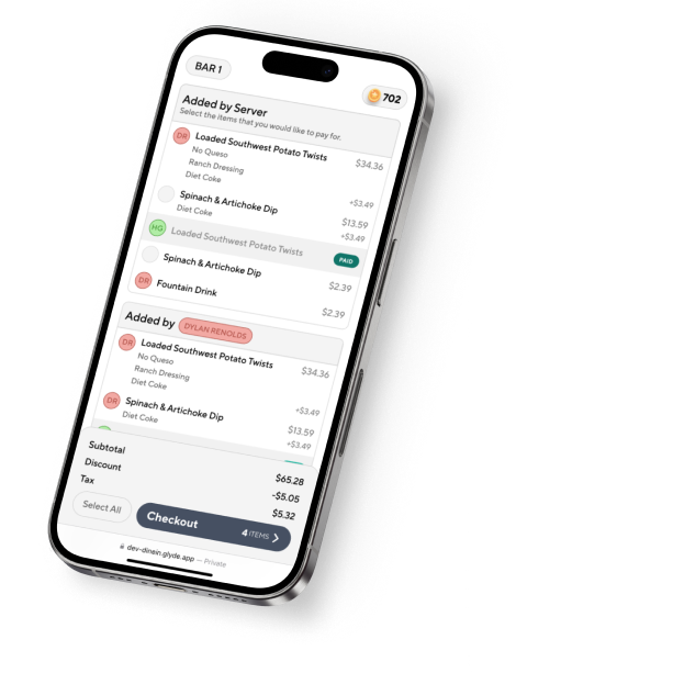 Checks print with a Glyde QR code and short link. Servers drop the check as usual—no new hardware, no change to your flow.